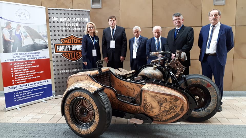 Podpisanie umowy partnerskiej pomiędzy szkołą a lokalnym przedstawicielem Harley-Davidson.