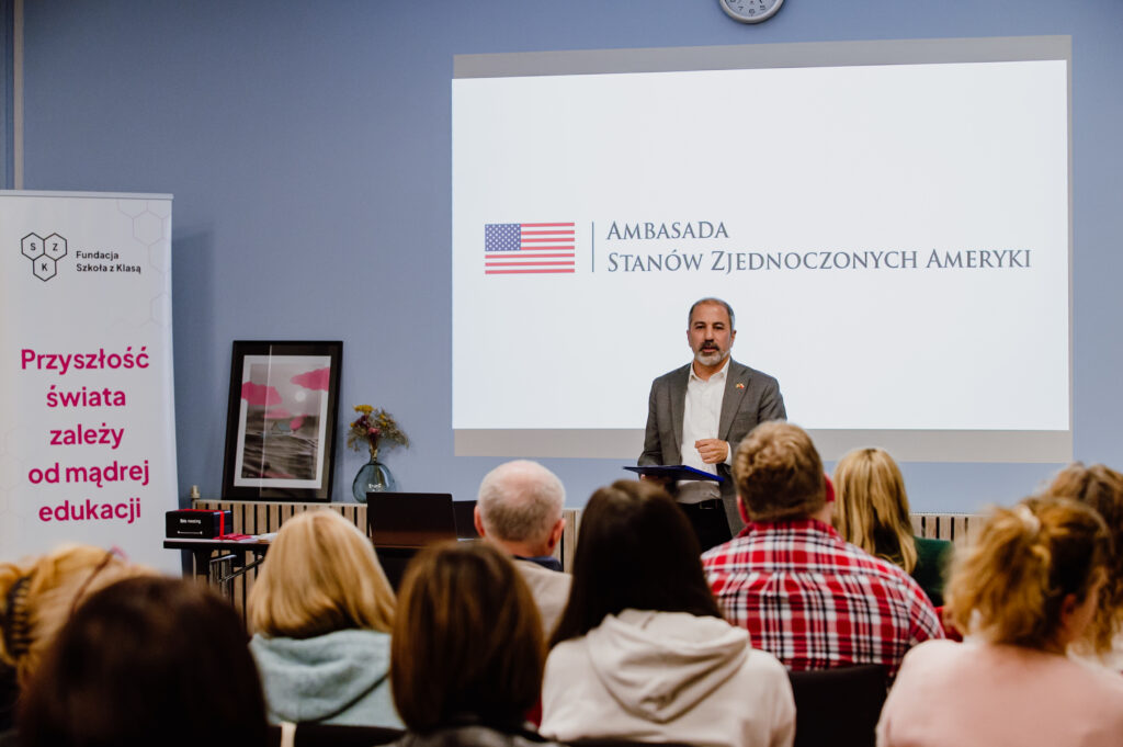 W dniach 13–15 grudnia 2024 roku nasze koordynatorki projektów, pani Bożena Gajewska i pani Monika Winiarska, uczestniczyły w szkoleniu inaugurującym ten trzyletni program. Uroczysta inauguracja, która odbyła się w Warszawie, zgromadziła przedstawicieli organizatorów oraz uczestników z całego kraju. Program oficjalnie otworzyli prezes Fundacji „Szkoła z Klasą”, pani Agata Łuczyńska, oraz przedstawiciel Ambasady USA, pan Brian George. W swoich przemówieniach podkreślali jak wielkie znaczenie ma wspieranie młodych ludzi w rozwijaniu pasji, kreatywności i odwagi do działania.